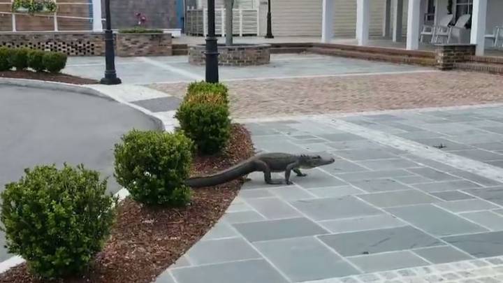 Out in South Carolina, US, one man spotted an alligator minding its own business as it took a stroll through an abandoned retail park.